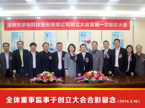 2014年3月26日,一个值得梦网人铭记的特殊日子!从这一天起,“深圳市梦网科技发展有限公司”这个令全体梦网人充满自豪与眷恋的名字,将成为所有梦网人永恒的记忆!经全体梦网人十余载艰苦卓绝的努力,公司规模不断壮大,运营管理日趋规范,综合实力日益提高,梦网科技已经具备了强劲的市场竞争能力。为使公司更加健康、快速地发展,进一步提升品牌影响力,做大做强,经全体股东投票表决,一致同意将梦网科技由“有限公司”整体变更为“股份有限公司”,为公司上市借力资本市场获得更大发展开启了新的征程。